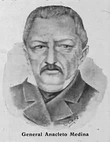 Anacleto Medina (1788 – July 17, 1871) was a Uruguayan soldier, politician and caudillo who participated in the Brazilian War, the Argentine Civil War and the Guerra Grande in the Banda Oriental.[1] He served in the Federal Army in the Unitary Army, and also in the Colorados and Blancos armies, during the Uruguayan Civil War.[2]