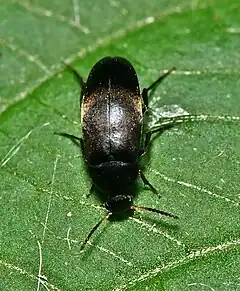 Anaspis is a large genus of beetles belonging to the family Scraptiidae. These small beetles are sometimes falsely called tumbling flower beetles (Family:Mordellidae) as they occur in large numbers on flowers and have a habit of tumbling to the ground when disturbed. They do not have a vernacular common name, but some recent authors have coined the name false flower beetles, though this is used for their taxonomic family as well.