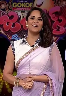 Anasuya Bharadwaj (born 15 May 1985[1]) is an Indian television presenter and actress who works in Telugu films and television.[2] She is most notable for her performances in the films Kshanam (2016) and Rangasthalam (2018).