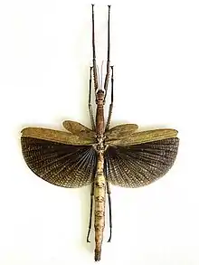 - ↑ Redtenbacher. 1908. Die Insektenfamilie der Phasmiden. III. Phasmidae Anareolatae (Phibalosomini, Acrophyllini, Necrosciini). 3:461