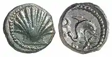 Small numbers of coins minted in other parts of the Mediterranean had circulated along the eastern coast of Spain perhaps from the sixth century, with an uptick from the fourth century.[8] These coins were part of a colonial frontier economy in which indigenous towns traded wines, ceramics and finished goods primarily for raw materials: precious metals, wood, food products and perhaps slaves.[9][10] Some coins may also have been earned by Iberian mercenaries fighting overseas.[11]