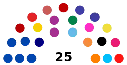 The Andean Parliament is the governing and deliberative body of the Andean Community, conformed by representatives of its four member states Bolivia, Colombia, Ecuador and Peru, and one associate member, Chile. It is composed of 25 parliamentarians, five representing each state.