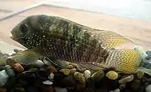 Andinoacara latifrons, the platinum acara, is a species of fish in the family Cichlidae in the order Perciformes, native to the Magdalena, Atrato, Sinú, and San Juan River basins in Colombia.[2] The scientific species name is indicative to its looks; latifrons meaning "broad forehead" or "broad front" in Latin.