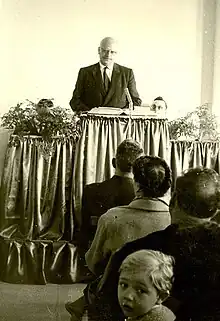 André Trocmé speaking in 1958 as co-secretary of the International Fellowship of Reconciliation