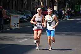 ![]() Andrea Cionna (left) running with his sighted guide | ||