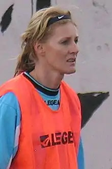 Andrea Farkas (born 1 September 1969)[1] is a former Hungarian international team handball goalkeeper who currently works as goalkeeping coach for Dunaújvárosi NKS. Among her achievements with the national team is an Olympic bronze medal from 1996 and an Olympic silver medal from 2000.[1] As a club player her career includes victory in the EHF Champions League, as well as several national championships.