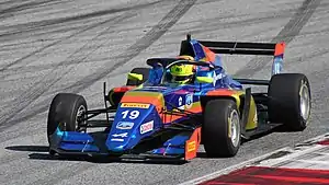 Rosso made his single-seater debut in the 2019 Italian F4 Championship, where he competed in four of the seven rounds for Antonelli Motorsport.[5][6] He scored two points and ended the season 25th in the standings, while also taking a podium in the rookies' championship.[7][8] That year, the Italian also took part in the Formula 4 Cup of the inaugural FIA Motorsport Games at Vallelunga.[9][10] He won the main race after qualifying third and gaining a position in each of the races, and earned himself and his country a gold medal on home soil.[11][12][13]