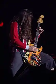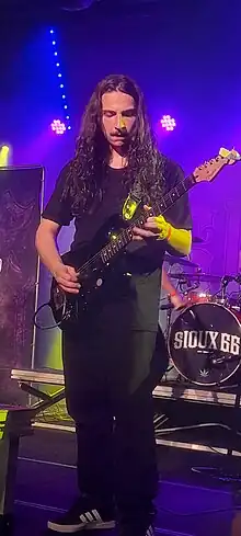 He was 10 when he started to listen to his parents' records of the Beatles, Roberto Carlos and Tonico & Tinoco.[1] He received his first acoustic guitar from his grandmother and later won a second guitar at a game of Bingo.[2] In his early adolescence, Kisser started to play acoustic guitar first learning basic chords from the Brazilian popular music repertoire and later on classical pieces. A friend then introduced Kisser to hard rock with bands like Queen and Kiss which had a great influence on him. In 1983, he went to see Kiss live in São Paulo and his father took him to Rock In Rio in 1985 to see AC/DC.[3] Kisser eventually got his first electric guitar, a Giannini-Supersonic, and an overdrive pedal. Kisser's first guitar was purchased for him by his mother.[4] Some of his major influences consisted then of Eric Clapton, Jimi Hendrix, Steve Howe, Tony Iommi, Ritchie Blackmore, Jimmy Page and Randy Rhoads.[5]