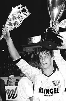 Wagenhaus celebrates winning the Deutschland Cup in 1990
