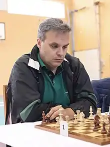 Andrei Maksimenko achieved his first successes in the early 1990s. With the Ukrainian SSR national team, he won the 19th Soviet Team Chess Championship (the last in the history of the country). He also received a gold medal in the individual classification, showing the best result on the 6th board.[1] In 1992, he took 4th place in the Ukrainian Chess Championship in Simferopol.[2] In 1993 Andrei Maksimenko took the 1st place in Lublin, and in 1994 he took the 2nd-3rd place (behind Gyula Sax) in Cattolica. In 1995, he achieved further successes: he single-handedly won the round-robin tournament in Aalborg (before Michał Krasenkow), took 2nd place in a strong competition in Copenhagen (behind Peter Leko, and ahead of Igor Glek, József Pintér, Curt Hansen and Jonny Hector) and triumphed (together with Dorian Rogozenco) in Lviv. In 1996 Andrei Maksimenko won the Schöneck (tournament B, ahead of Robert Kuczyński), in 1997 he shared the 1st place (together with Marek Oliwa, Aleksander Czerwoński and Mladen Muše) in the Emanuel Lasker memorial in Barlinek,[3] in 1999 he took the 2nd place (behind Alexander Motylev) in Lviv, and a year later in this city he took the 1st place (together with Alexander Chernin). In 2001 Andrei Maksimenko won in Milan and took 1st place in the next tournament held in Lviv. In 2002, he shared the 1st place in Legnica (together with Stanisław Zawadzki), and a year later he repeated this achievement (together with Gyula Sax) in Bratto (Lombardia). In 2004, he single-handedly won in two round-robin tournaments held in Poland: in Nowy Targ and in Barlinek (Emanuel Lasker Memorial), while in 2006 he was among the winners (together with, among others, Jakub Czakon) of the traditional tournament in Görlitz. In 2009, Andrei Maksimenko took the 2nd place (behind Viktor Erdős) in Berlin, and in 2013 he won (together with Vladimir Malaniuk) in the tournament for the Cup of the Lower Silesian Voivode in Legnica.