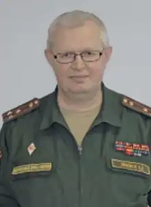 In 2000 he graduated from the Frunze Military Academy, and was promoted from a senior officer of the Siberian Military District's electronic warfare service to head of the Vostok regional command headquarters' electronic warfare service. In 2010, he graduated from the General Staff Academy and was appointed Chief of the Electronic Security Service of the Western Military District of the Russian Federation.[4][5] By 2011, he had been promoted to the rank of colonel.[6] Since 2014, he has been Deputy Chief of the Electronic Warfare Troops of the Russian Armed Forces.[4]