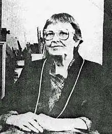 Kauffman died on July 4, 1993, in Chicago.[22] Throughout her lifetime, her works were exhibited at the Brooklyn Museum, Riverside Museum and the Whitney Museum of American Art in New York City, as well as at numerous galleries in Chicago.[4] The Third Unitarian Church of Chicago, known as the "church of the murals" because of Kauffman's artwork has been designated a Chicago architectural landmark. Photographs of the murals were displayed in New York and at an exhibit hosted by the U.S. National Society of Mural Painters in Moscow, at the College of Industrial and Applied Arts.[23]