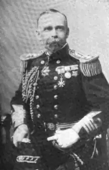 Bickford joined the Royal Navy in 1858 and took part in the action involving the Huáscar in 1877.[2] He commanded HMS Thalia during the Anglo-Egyptian War of 1882 and became Commander-in-Chief, Pacific Station in 1900.[2] His flagship in the Pacific was HMS Warspite until March 1902, when he hoisted his flag on board the first class cruiser HMS Grafton, and Warspite returned home.[3] Promoted to vice admiral in 1904[4] and to full Admiral in 1908, he retired later that year.[2]