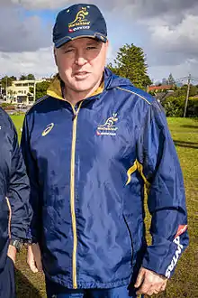 Andrew Thomas Blades (born 4 June 1967), was a rugby union player for Australia from 1992 to 1999. Andrew was first chosen for the Wallabies match 22 in 1992 against the All Blacks but did not get on the field. Later that year he toured with the Wallabies to South Africa and the United Kingdom playing in non-test matches. His first Test Cap was not achieved until 1996 against Scotland. His last game for Australia was their victory over France in final of the 1999 Rugby World Cup.[1] After retiring from playing he became a coach, leading the Newcastle Falcons for two years before becoming the forwards coach for the Wallabies.[2]