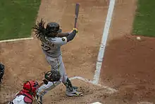 McCutchen took the place of the injured Ryan Braun as a member of the National League All Star team at the 2011 Major League Baseball All-Star Game in Phoenix.[28] On August 30, 2011, McCutchen hit a ninth inning homer against the Houston Astros to become the eighth Pirates player to record at least 20 home runs and 20 stolen bases in one season. He was the first Pirate to accomplish the feat since Nate McLouth in 2008.[29]