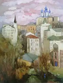 Andriivskyi Descent or Andrew's Descent[1][2][3][4] (Ukrainian: Андріївський узвіз, Andriivs′kyi uzviz) is a historic descent connecting Kyiv's Upper Town neighborhood and the historically commercial Podil neighborhood. The street, often advertised by tour guides and operators as the "Montmartre of Kyiv", is a major tourist attraction of the city.[5][6] It is included in the list of national landmarks by the government resolution.[7][lower-alpha 2] In addition, the street is also part of the Kyiv city historic reserve "Ancient Kyiv", while the St.Andrew's Church belongs to the National historic reserve "Sophia of Kyiv".