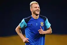 Andriy Mykolayovych Yarmolenko (Ukrainian: Андрій Миколайович Ярмоленко; born 23 October 1989) is a Ukrainian professional footballer who plays as a winger or forward for Ukrainian Premier League club Dynamo Kyiv and captains the Ukraine national team.