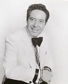 Andy Russell (born Andrés Rábago;[1] September 16, 1919 – April 16, 1992) was an American popular vocalist, actor, and entertainer of Mexican descent, specializing in traditional pop and Latin music. He sold 8 million records in the 1940s[2] singing in a romantic, baritone voice and in his trademark bilingual English and Spanish style.[3][4] He had chart-busters, such as "Bésame Mucho", "Amor", and "What a Diff'rence a Day Made". He made personal appearances and performed on radio programs, most notably Your Hit Parade, in several movies, and on television. During this initial phase of his career, his popularity in the United States rivaled that of crooners Frank Sinatra and Perry Como.