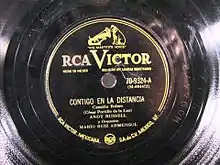 In short order, he was offered a recording contract with RCA Victor Records of Mexico. His subsequent recording of "Contigo en la distancia" ("I'm With You Though You're Gone") by Cuban composer César Portillo de la Luz and backed by Mario Ruiz Armengol and his Orchestra was an unparalleled success and was number one on the music charts for eight months.[91] His interpretation propelled this song to international fame and was so novel and overpoweringly romantic that it was viewed as influencing the birth rate in Mexico.[94] His version of this classic Cuban composition is considered one of the best.[4]