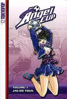 Angel Cup (엔젤컵) is a manhwa about girls' soccer in the Republic of Korea. The writer is Jae-ho Youn (윤재호), and the artist is Dong-wook Kim (김동욱).