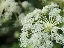 Angelica dahurica, commonly known as Dahurian angelica,[1] is a widely grown species of angelica native to Siberia, Russia Far East, Mongolia, Northeastern China, Japan, Korea, and Taiwan.[2] This species tend to grow near river banks, along streams and among rocky shrubs.[3] The root of the plant is widely used for its medicinal properties and is known to contain furanocoumarins and angelicotoxin.[4]