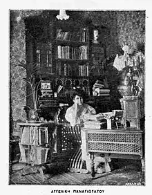 - ↑ "Panagiotatou, Angeliki (1878–1954)". Women in World History: A Biographical Encyclopedia. Gale Research. 2002. Archived from the original on 2017-02-13.