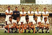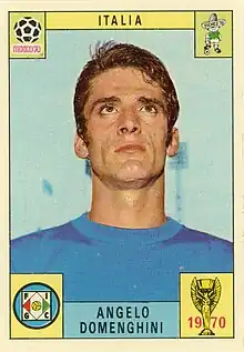 Angelo Domenghini (Italian pronunciation: [ˈandʒelo domeŋˈɡiːni]; born 25 August 1941) is an Italian football manager, and former footballer, who played as a forward, often as a right winger, or even as a striker.[2] Despite his creative role, he also had a notable eye for goal, as well as excellent technical ability, which, along with his acceleration and agility, allowed him to beat players with the ball, in particular during one on one situations.[3][4] He represented Italy in their victorious UEFA Euro 1968 campaign, as well as at the 1970 FIFA World Cup, where they finished in second place, playing in the finals of both tournaments.[4]