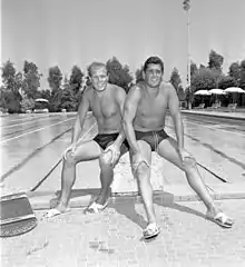 Romani (left) with the Olympic swimmer Carlo Pedersoli (aka Bud Spencer)