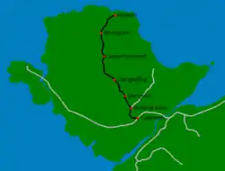 The Anglesey Central Railway (Welsh: Lein Amlwch, Amlwch Line) was a 17.5-mile (28.2 km) standard-gauge railway in Anglesey, Wales, connecting the port of Amlwch and the county town of Llangefni with the North Wales Coast Line at Gaerwen. Built as an independent railway, the railway opened in portions from 1864 to 1867. Due to financial troubles the railway was sold to the London and North Western Railway in 1876, which invested significantly in the infrastructure. Operation continued under various companies during the 20th century, but passenger services were withdrawn in 1964 as part of the Beeching Axe. Industrial freight services continued until 1993. The railway's tracks remain and local groups have demonstrated an interest in restoring services as a heritage railway. As of 2023, the middle 7 miles (11 km) from Llangefni station via Llangwyllog to Llannerch y Medd station have largely been cleared of vegetation, with a view to reopening.