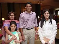 Kumble was born to family in Bangalore, Mysore State (now Karnataka), to Krishna Swamy and Saroja who both hail from Kumbla near Kasaragod, Kerala.[9][10] Kumble has a brother named Diinesh Kumble. He is married to Chetana Kumble,[11] and has three children – son Mayas Kumble and daughters Aaruni and Svasti Kumble.[12][13] His mother tongue is Kannada.[14]