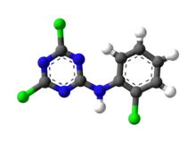 Anilazine (ǎ-nǐl-a-zēn) is an organic compound with the chemical formula C9H5Cl3N4. It is a pesticide used on crops. It comes under the category of triazine fungicides. It is used for controlling fungus diseases which attack lawns and turf, cereals, coffee, and a wide variety of vegetables and other crops. It is also used for the control of potato and tomato leafspots.