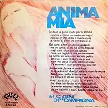 "Anima mia" is a 1973 song composed by Antonello De Sanctis, Flavio Paulin and Ivano Michetti and performed by the musical group Cugini di campagna. The first top ten hit in the band's career, the song got an additional gold disc in 1997, when it named a nostalgia-based Rai 2 variety show presented by Fabio Fazio and Claudio Baglioni.[1]