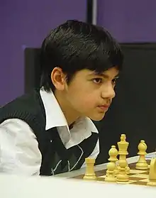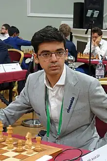 Anish Kumar Giri (Nepali: अनीश कुमार गिरी; Russian: Аниш Кумар Гири; born 28 June 1994) is a Dutch chess grandmaster. A chess prodigy, he completed the requirements for the grandmaster title in 2009 at the age of 14 years, 7 months and 2 days.[2][3] Giri is a five-time Dutch champion (2009, 2011, 2012, 2015, and 2023) and won the Corus Chess B Group in 2010. He has represented the Netherlands at six Chess Olympiads (2010, 2012, 2014, 2016, 2018, 2022). He has also won major international tournaments, including the 2012 Reggio Emilia tournament, 2017 Reykjavik Open, 2023 Tata Steel Chess, and shared 1st place in the 2015 London Chess Classic. In 2019 he won clear first at the Third Edition of the Shenzhen Masters, deemed by some to be his first supertournament victory.[4]