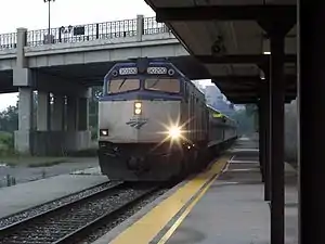 The station is 3,206 square feet (297.8 m2) in size.[5] The station has a ticket office,[5] is fully wheelchair accessible and has an enclosed waiting area. Other amenities include public restrooms, vending machines, paid parking, and a taxi stand. Baggage cannot be checked at this location; however, up to two suitcases in addition to any "personal items" such as briefcases, purses, laptop bags, and infant equipment are allowed on board as carry-ons.