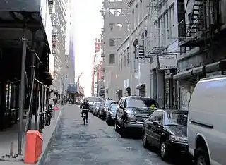 Ann Street is one of the oldest streets in New York City, appearing on a map created in 1728. Ann Street was named after Ann White, the wife of a developer and merchant, Capt. Thomas White. She may have urged him to name the street after her because other merchants' wives already had streets named after them.[1] The street is relatively small and short compared with the other lower Manhattan streets named after merchants' wives.