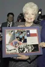 - ↑ The line originated in a 1982 Frank and Ernest cartoon by Bob Thaves as, "Sure he was great, but don't forget that Ginger Rogers did everything he did, backwards... and in high heels." On the internet and in many publications the line is incorrectly attributed to Faith Whittlesey (see "List of Websites That Have Attributed Thaves' Line to Whittlesey". Retrieved July 25, 2009.). Ann Richards popularized the line by using it in this speech but she credits Linda Ellerbee with giving her the line, and Ellerbee credits an anonymous passenger on an airplane with giving her the line (see Keyes, Ralph (2006) (May 30, 2006). "The Quote Verifier: Who Said What, Where, and When". St. Martin's Griffin. p. 77. ISBN 0-312-34004-4.