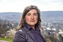 ![]() MEP Anna Deparnay-Grunenberg in 2023 with her hometown Stuttgart in the background | |