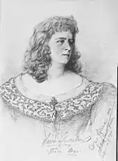 This was followed by engagements at the Schauspielhaus Berlin (1878-1879), where she made her debut as The Maid of Orleans, and in Frankfurt (1880-1883). In addition, Haverland made numerous guest appearances with the ensemble of the Meiningen Court Theatre, including tours to London and St. Petersburg. Another engagement led her to the Deutsche Theater Berlin in 1883, where she played beside Josef Kainz. Contemporaries praised her performance of Antigone, Iphigenia, Sappho and Medea.[1] In 1892, Haverland made a guest appearance in New York City, where she played the leading role in Ibsen's Hedda Gabler at the Amberg's Theatre. It was the first German performance of the play in America; Ibsen chose himself Haverland as the actress when the play was first performed at the Lessing Theatre in Berlin in February 1891.[3][4] Haverland was in contact with other artists of her time, including Theodor Fontane. In the Berlin novel Allerlei Glück, which has remained in fragment form, Fontane placed the character of the theatre-loving Bertha, who is enthusiastic about the role of Iphigenie and chats with her friend Hanke about various plays, on a posthumous journey to Haverland.[5] Johannes Schilling took the arm of Germania of the Niederwalddenkmal from Haverland's arm as a model.[6]