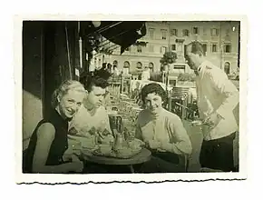 Anna Moffo (right) with Janet Cox-Rearick Waldman (left) at a cafe in Rome in 1954, when both were Fulbright Fellows in Italy