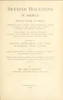 - Swedish Holsteins in America from 1644 to 1892 : comprising many letters and biographical matter relating to John Hughes, the "stamp officer," and friend of [Benjamin] Franklin ; with papers not before published relating to his brother of Revolutionary fame, Colonel Hugh Hughes of New York ; the families of DeHaven, Rittenhouse, Clay, Potts, Blakiston, Atlee, Coates, and other descendants of Matthias Holstein of Wicaco, Philadelphia are included ; thirty-five family pictures and facsimile of letters of Benjamin Franklin and Reverend Nicholas Collin, D.D., are given (1892)