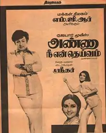 Anna Nee En Deivam (transl. Elder brother, you are my god) is a shelved Indian Tamil-language film directed by C. V. Sridhar and produced by Jayaar Movies.[1] The film was to have starred M. G. Ramachandran, Latha, Sangeeta, M. N. Nambiar and V. S. Raghavan.