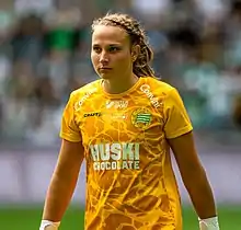 On 6 June 2023, Hammarby won the 2022–23 Svenska Cupen. Tamminen appeared in the final, that ended in a 3–0 win at home against BK Häcken.[12] On 5 July the same year, Tamminen signed a new three year-contract with the club, running until the summer of 2026.[13] The club also won the 2023 Damallsvenskan, claiming its second Swedish championship after 38 years.[14] Throughout the season, Tamminen set a new league record when the side did not concede a goal for 757 straight minutes, eventually ending the campaign with 13 clean sheets.[15][16][17] After the season, she vas voted Hammarby Player of the Year by the supporters of the club.[18] Tamminen was also awarded the Damallsvenskan prizes Goalkeeper of the Year and Most Valuable Player of the Year.[19]