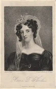 Anna Wheeler (c. 1780 – 1848), also known by her maiden name of Anna Doyle, was an Irish born British writer and advocate of political rights for women and the benefits of contraception. She married Francis Massey Wheeler when she was "about 16" and he was "about 19", although the year is not known. They separated twelve years later. After his death she supplemented her income by translating the works of French philosophers.[1]