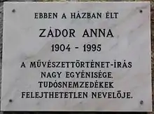 Zádor died in Budapest in 1995.[1] There is a plaque in her memory on Rózsahegy Street No 1/b in Budapest. Zador's memoirs are a useful source for the Holocaust in Hungary as she survived and she knew many who did not.[3]