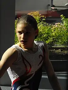 Anne Kuhm (born December 17, 1996) is a French artistic gymnast. She represented France at the 2012 Summer Olympics,[3] and was a reserve for the all-around final.[4] The French team finished 11th in the qualification round, and they did not qualify into the team final.[5] She is a 2-time national all-around champion (2011 and 2012).[6]