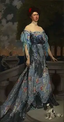In 1903 Archbold's portrait was painted by Frederick William MacMonnies.[1] That same year she started construction of Archbold Cottage at Bar Harbor, Maine, based on a model Archbold had had made while in Paris. Finished in 1904, the cottage was designed by Frederick Lincoln Savage and inspired by villas Archbold had seen in Tuscany. It featured a terraced garden with fountain and 12 stucco arches overlooking a forest, mountains and the ocean. From the principal bedroom a spiral staircase led to a tower with panoramic views and a bathroom. A local newspaper described it as one of the most unique homes in Bar Harbor and as Savage's most exotic and unusual commission. The structure burnt down in 1947.[2][3]