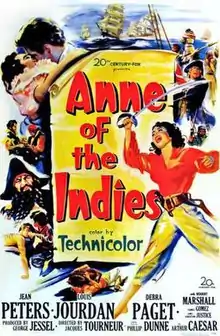 Anne of the Indies is a 1951 Technicolor adventure film made by 20th Century Fox. It was directed by Jacques Tourneur and produced by George Jessel.