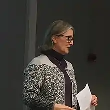 ![]() Anneli Aejmelaeus giving a presentation at the University of Helsinki. | |