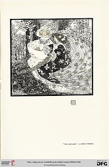 As a member of a group of designers and artists known as the Glasgow Girls,[6] French was best known for black-and-white illustrations in the Art Nouveau style.[2][7] Her influences included Aubrey Beardsley,[8] Jessie M. King,[9] and Charles Rennie Mackintosh.[6]