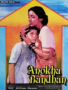 Anokha Bandhan (transl. Unique Relation) is a 1982 Hindi-language drama film, produced by Ratan Irani under the Shree Jagdamba Movies banner and directed by Mehul Kumar. It stars Ashok Kumar, Shabana Azmi, Navin Nischol, Master Bittu while Jeetendra has given a Special Appearance and music composed by Usha Khanna. The film remade as Telugu movie Vadina Maata (1992).